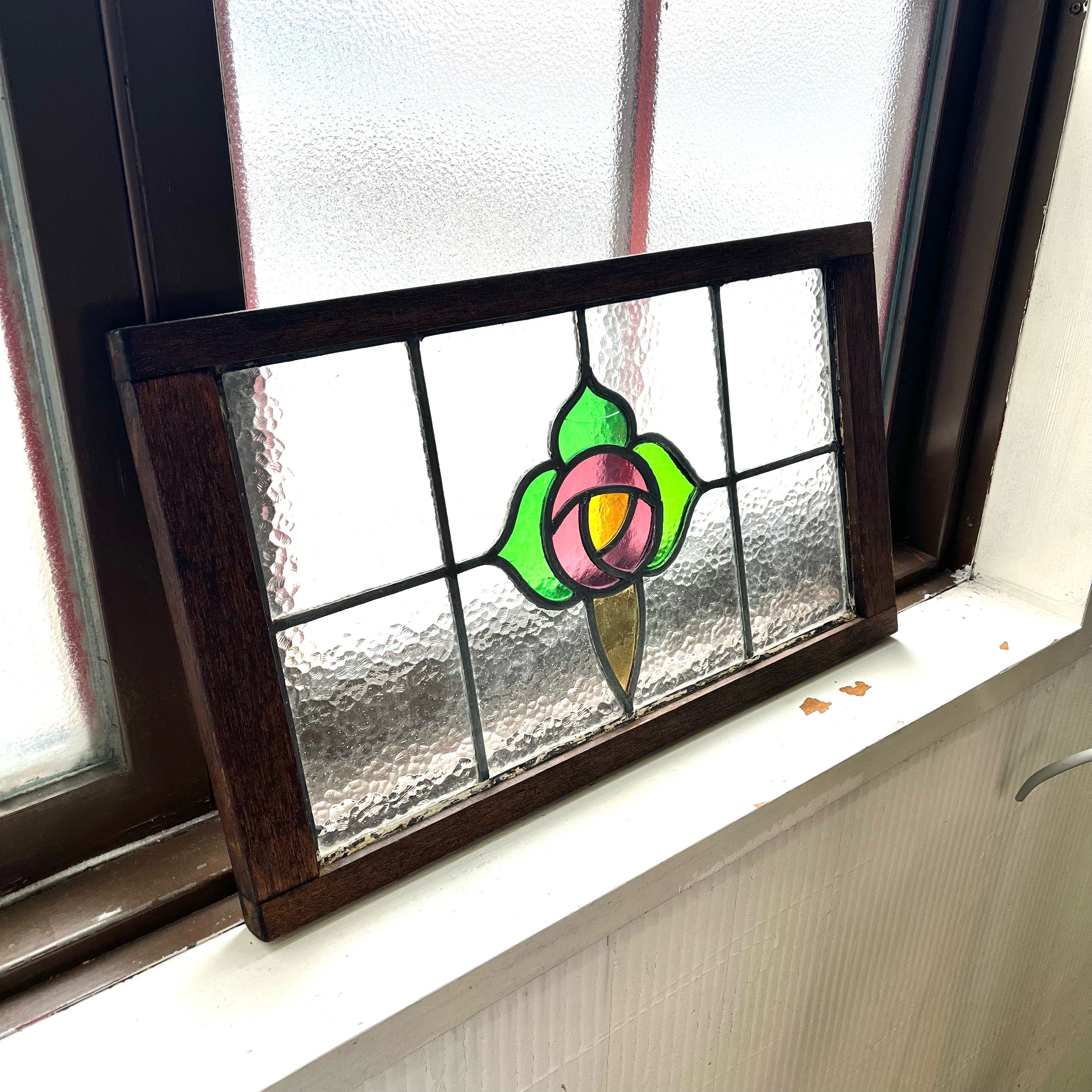 ステンドグラス 窓 木枠 ディスプレイ 【小】英国アンティーク