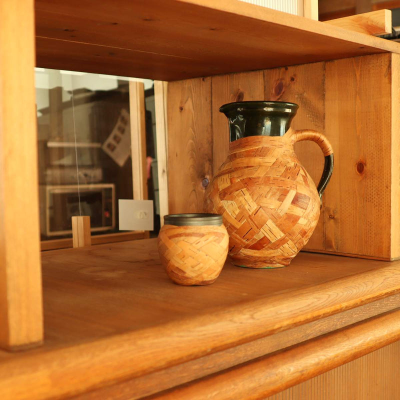 ポット 小物入れ フラワーベース 白樺樹皮 陶器 リトアニア 中古