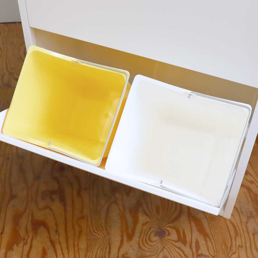 狭いスペースでもすっきりと置けて邪魔にもならず、さらに使い勝手が良くデザイン性も高いダストボックスです。4セパレーターでそれぞれ取っ手の付いたバケツで分かれているので、ゴミの分別も出し入れも簡単にできます。