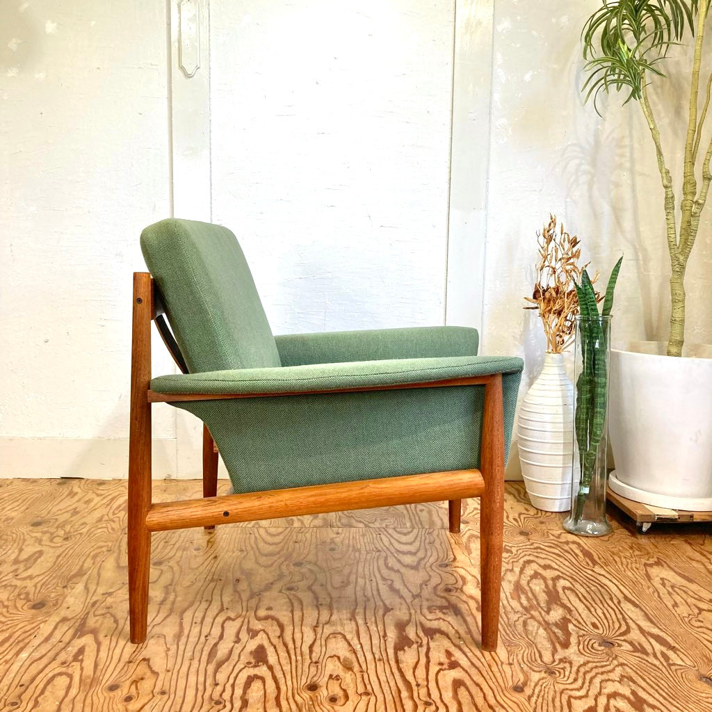 デンマーク フランス&サン / France&son グレーテ・ヤルクデザインのModel168 イージーチェア グリーンのヴィンテージ品です。2脚入荷しました。