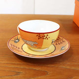 アフリカシリーズのこちらのティーカップ&ソーサーは、サバンナの動物たちが今にも動き出しそうなほどリアルに生き生きと描かれています。アフリカシリーズはブラウンとグリーンがありますが、こちらは夕焼けをイメージさせるような暖かみの感じられるブラウンです。