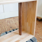 古い家具から抽出した無垢材を組み合わせてつくるので、端材の種類が異なるのはもちろん、古い家具の名残があります。そんな味わいも一緒にお楽しみください。