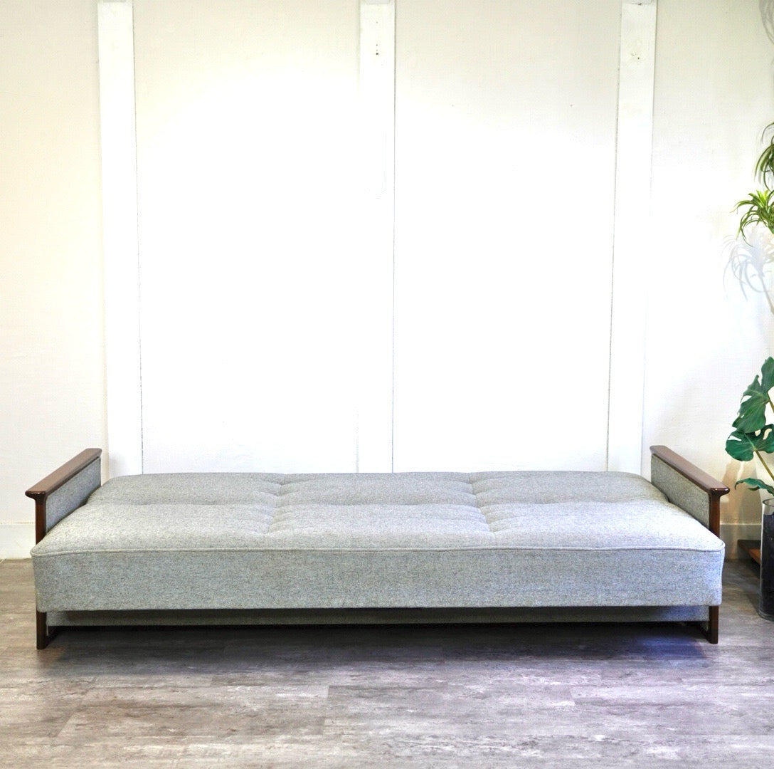 このオールドカリモク スリーピングソファは、ソファとベッドの機能を兼ね備えたレトロ感あふれる逸品。どっしりとした存在感と、3人掛けのゆとりあるサイズ感で、リビングの主役になること間違いなし!