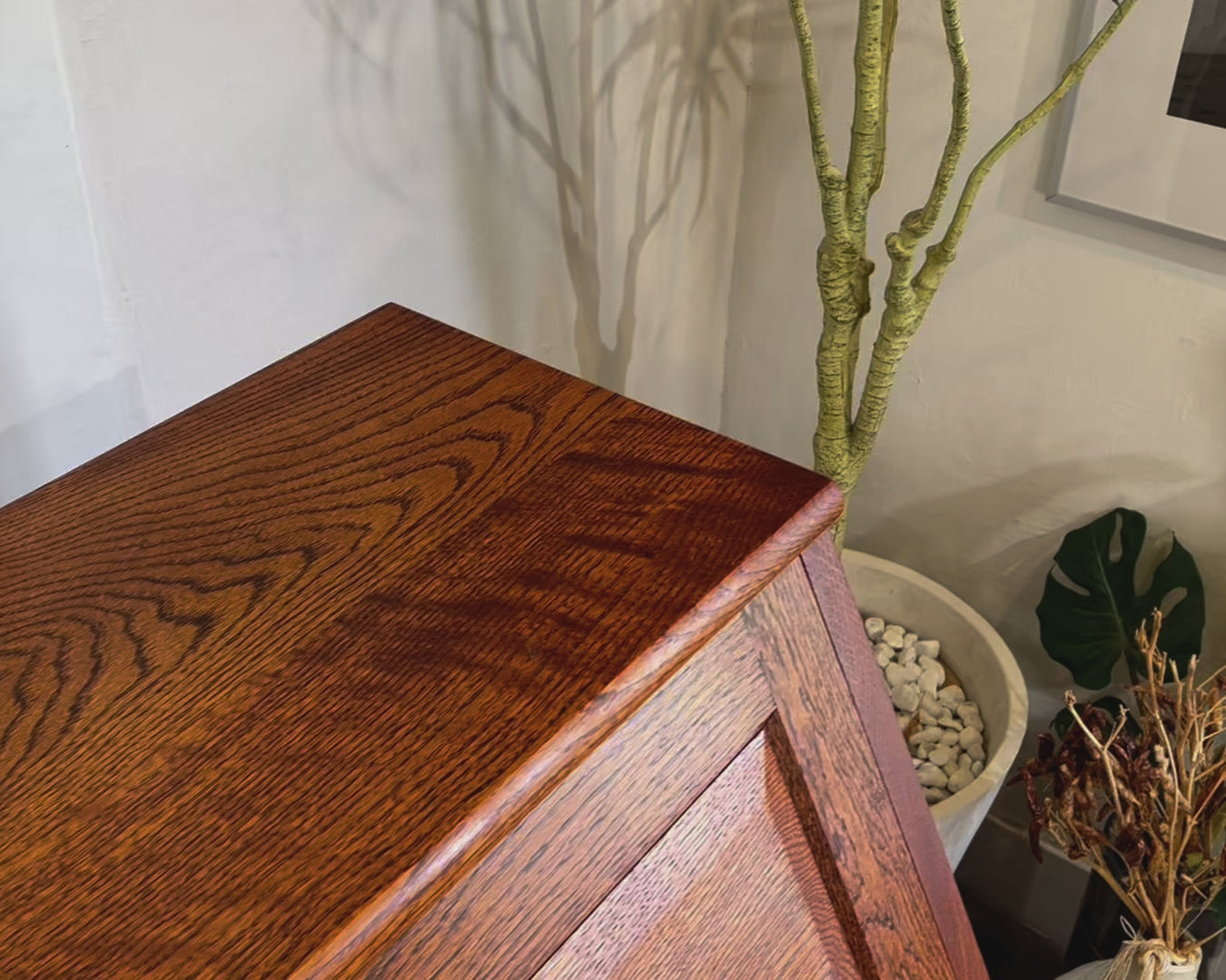国産ナラ無垢材の木目も美しく、何世代にも渡りお使いいただける上質な家具です。定価はなんと88万円という価格!芸術品の域ですね。ぜひ上質な家具を感じてください。