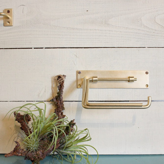 素材の持つ特性を生かすためあえて無塗装仕上げで、経年により表面の色が変化していきます。 無駄を省いた、とてもシンプルなデザインの真鍮のペーパーホルダーです。