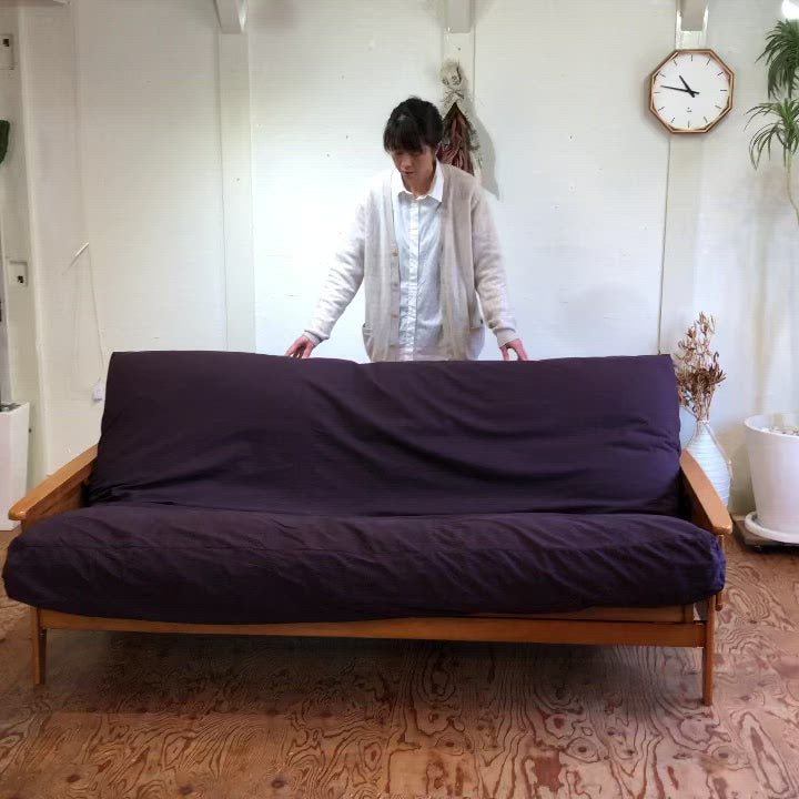 昼間はソファ、夜はベッドにすると、ダブルサイズになりゆったり寝転ぶことができます。マットは分厚く適度な硬さと柔らかさで日本の布団のようです。その分大変重さがあり、2人以上での持ち運びをおすすめします。