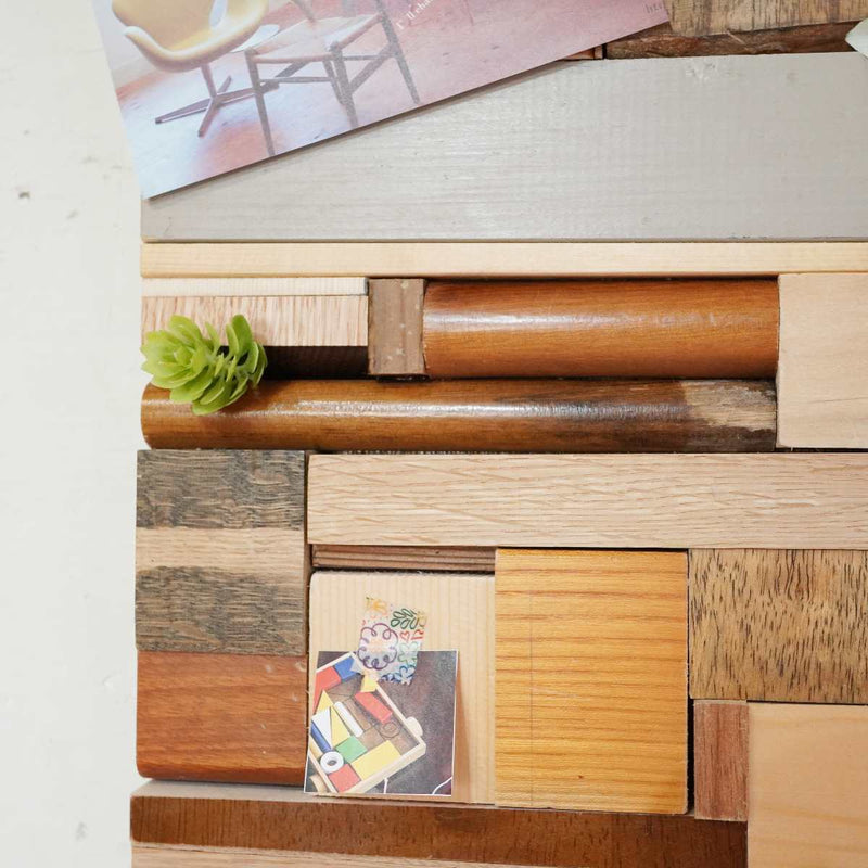 家具から出た廃材を何かに使えないだろうか…?良い材を捨ててしまうのはもったいない!その精神からこのスクラップウッドパネルは生まれました。