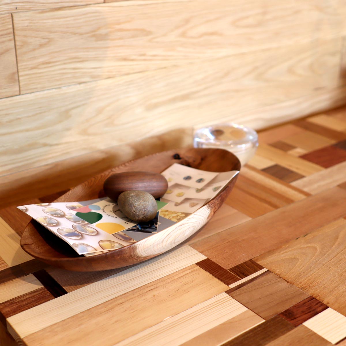 雑貨やウッドボウルや食器など、細部の美しさや木の質感が身近に感じられるようにこだわったものを制作し、これらのプロダクトや家具が、この地球上の大切な自然からできているということを改めて実感していただきたいです。