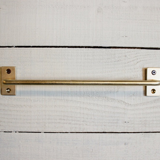 鉄、ステンレス、真鍮、銅などを使用して、全てハンドメイドで制作を行っている愛知県にある千葉工作所の“towel holder brass-S”です。 素材の持つ特性を生かすためあえて無塗装仕上げで、経年により表面の色が変化していきます。無駄を省いた、とてもシンプルなデザインの真鍮のタオルホルダーです。 飲食店さんのインテリアや店舗さんの水周りなどにいかがでしょうか?