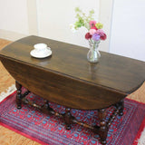 英国の老舗ブランドアーコール(ERCOL)、エルム材のバタフライテーブルです。17世紀初頭に流行した挽き物加工の脚がおしゃれで高級な佇まい。天板を広げて脚を手前に引くだけで簡単に大きくしたり収納したりできます。テーブルの高さは低めのロータイプなのでセンターテーブルや座卓のようにも使えます。天板を折りたたんでサイドテーブルとして使ったり、部屋の隅にしまったり、利便性にも優れています。ダークブラウンのような濃いめの色味は、落ち着いた大人の空間にぴったりです。