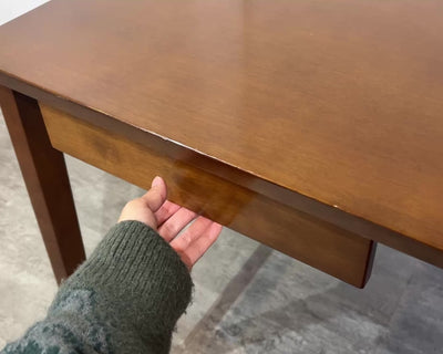 細身の脚と角の立った天板、そして控えめな小引き出し。まさに、大人のためのデスク・ワークスペースになるんです。