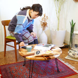 折りたたみ ラウンドテーブル ローテーブル 【鉄脚】不要になった古い家具の木材の細切れから作った折り畳めるローテーブル リバイブモブラープロジェクト