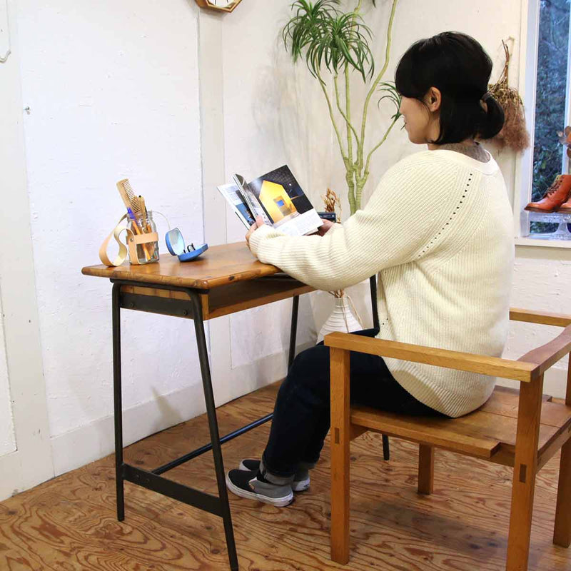 こちらのデスクはスタイリッシュな学校机のようなデザインで、ちょっとした作業なんかにぴったり!収納もついているので、パソコンや資料を収納することもできます。