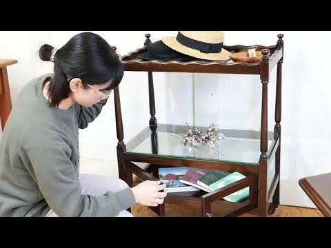 細身でかわいらしいアンティークワゴン。そのクラシカルなデザインと機能性で、お部屋を優雅に演出します。