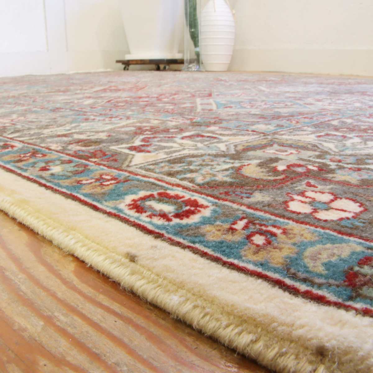 前オーナー様は40万円くらいで購入したとのことですので、この価格は買いではないでしょうか?シングルよりも手間と時間をかけて丁寧に織られたダブル織りの絨毯は、一生ものです。