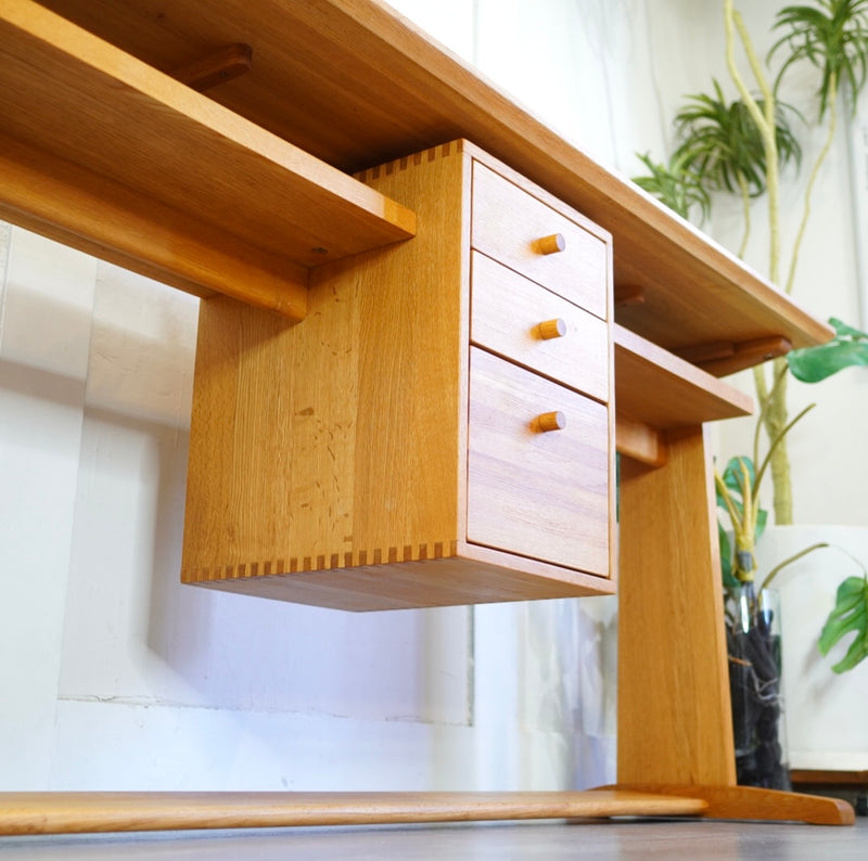CRASH GATEのロングセラー「Didy ツインデスク」は、幅150cmで親子や兄弟で並んで使えるちょうどいいサイズ感。コンパクトだけど、中央には3段の引き出し、さらに天板下にはオープン収納スペース付きで、しっかり整理整頓できるのが魅力!