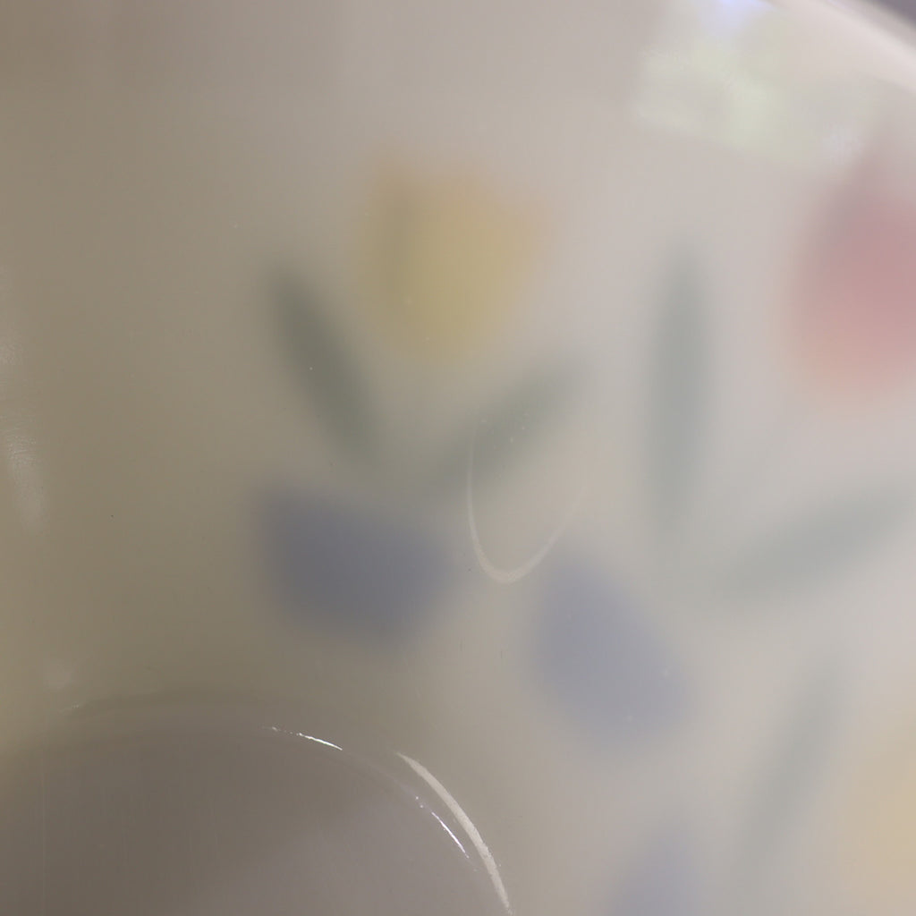 シンプルな形ですが、かわいらしい絵柄のチューリップが描かれた印象的なボウルです。飾っておくだけでも絵になります。