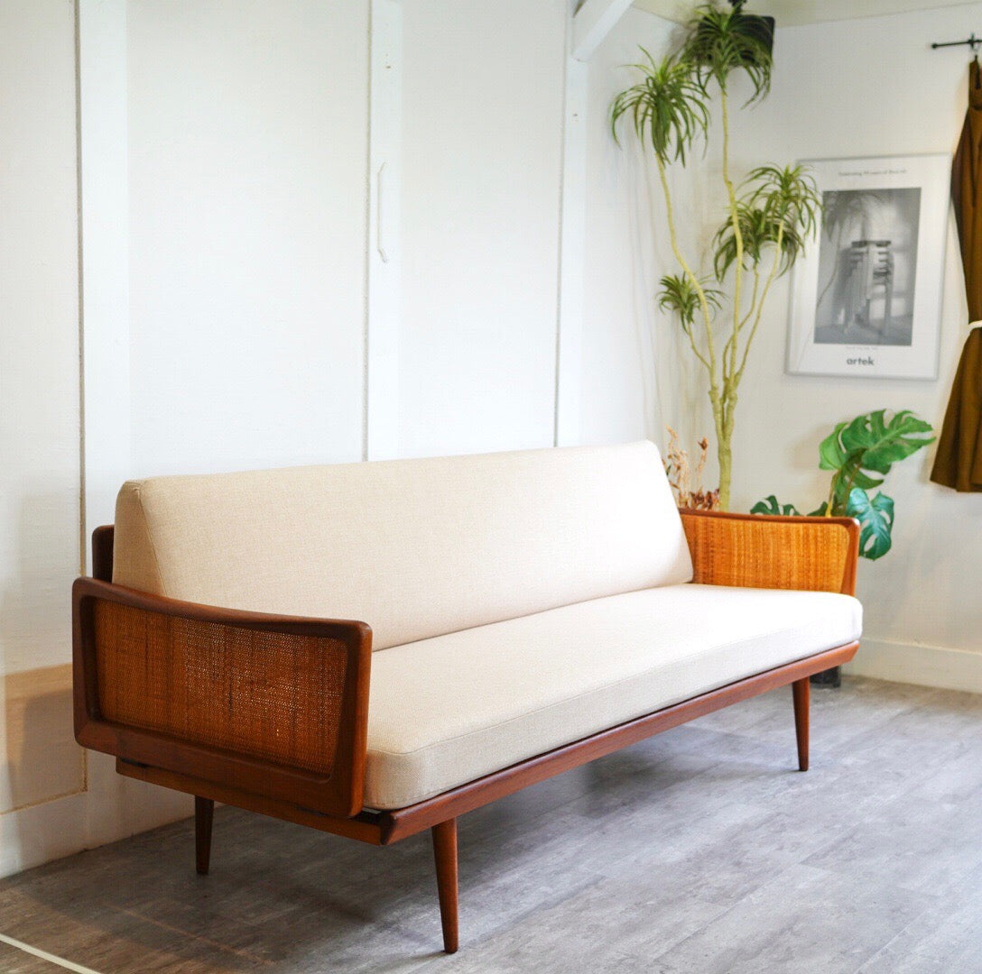 France & Sonのトリプルソファは、北欧ヴィンテージらしい洗練されたデザインが特徴的。チーク材とラタンを組み合わせたユニークなデザインで、自然素材の温かみと美しい曲線が魅力です。北欧ヴィンテージ家具の代表的なスタイルを感じさせます。