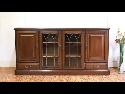 こちらのサイドボードも細部にまで美しさにこだわっています。ガラス面には金モールが施され、美しさと高級感を演出しています。取手も味わいのある特徴的なデザインになっています。