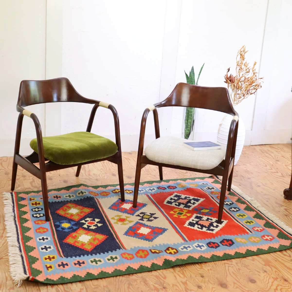ラグは意外にも空間の雰囲気を変えるのに大事なアイテムです。季節問わず使える素敵な色味のキリムです。また、永く使うことで生地が柔らかくなっていくのも魅力のうちの一つですね。