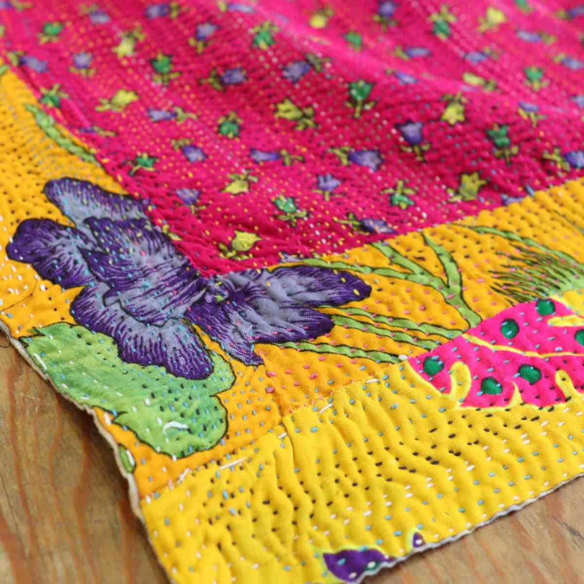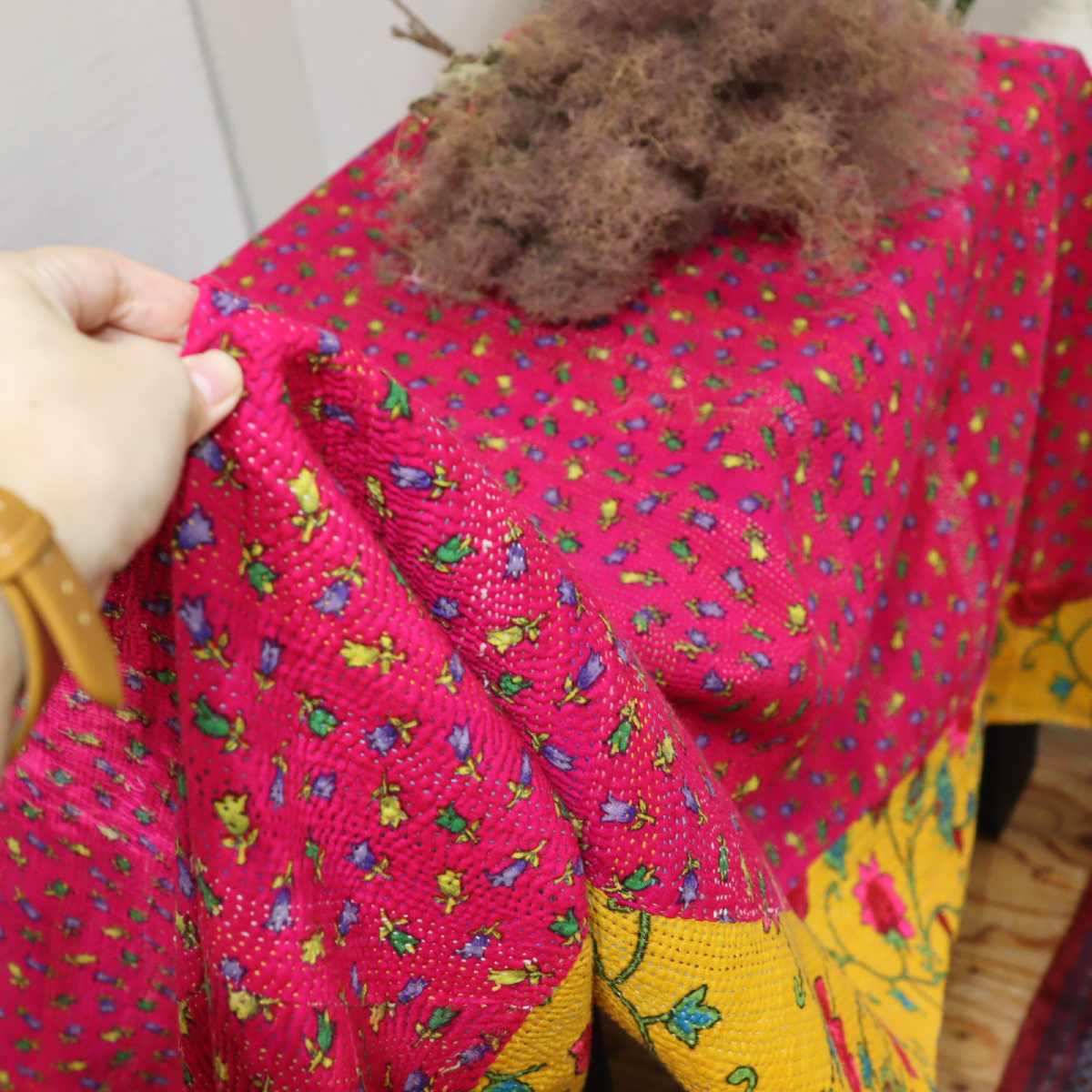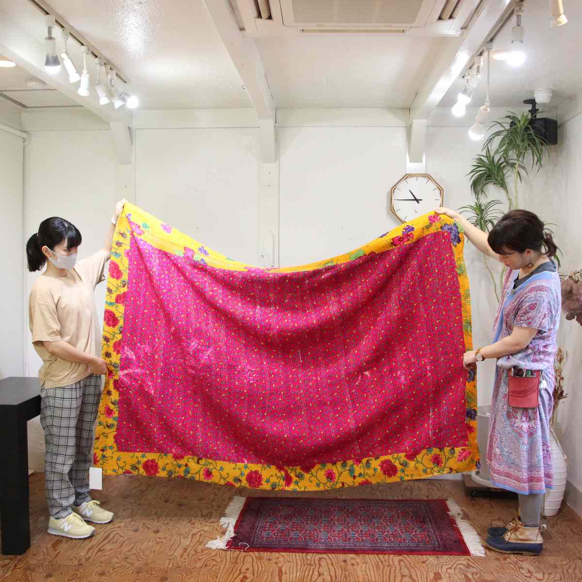 ラリーキルトとは、古くなったサリーやデュバタ、腰布、ハギレなどをパッチワークしてランニングステッチ(刺し子)を施したテキスタイルで、インド・パキスタン・バングラデシュなどの中央アジアで長い間受け継がれてきた伝統工芸品です。