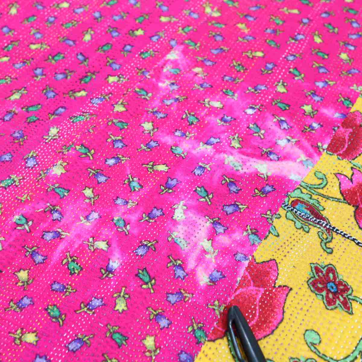 ラリーキルト 【2】 ラグ パッチワーク ステッチ ピンクイエロー中古