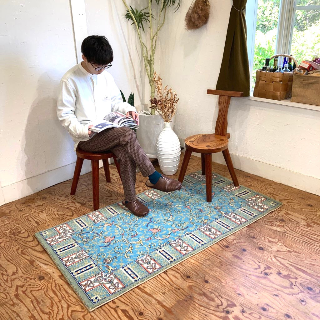 SARAY HALI ラグ 絨毯 敷物 小 ブルー 玄関マット サライ 中古