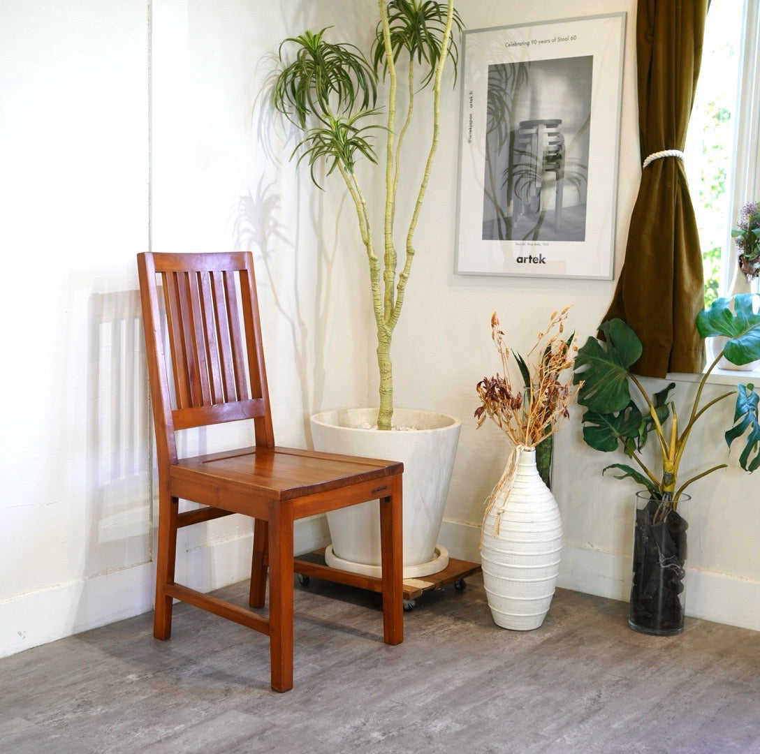 チーク材特有のやさしい木目と色合いが特徴のダイニングチェア。