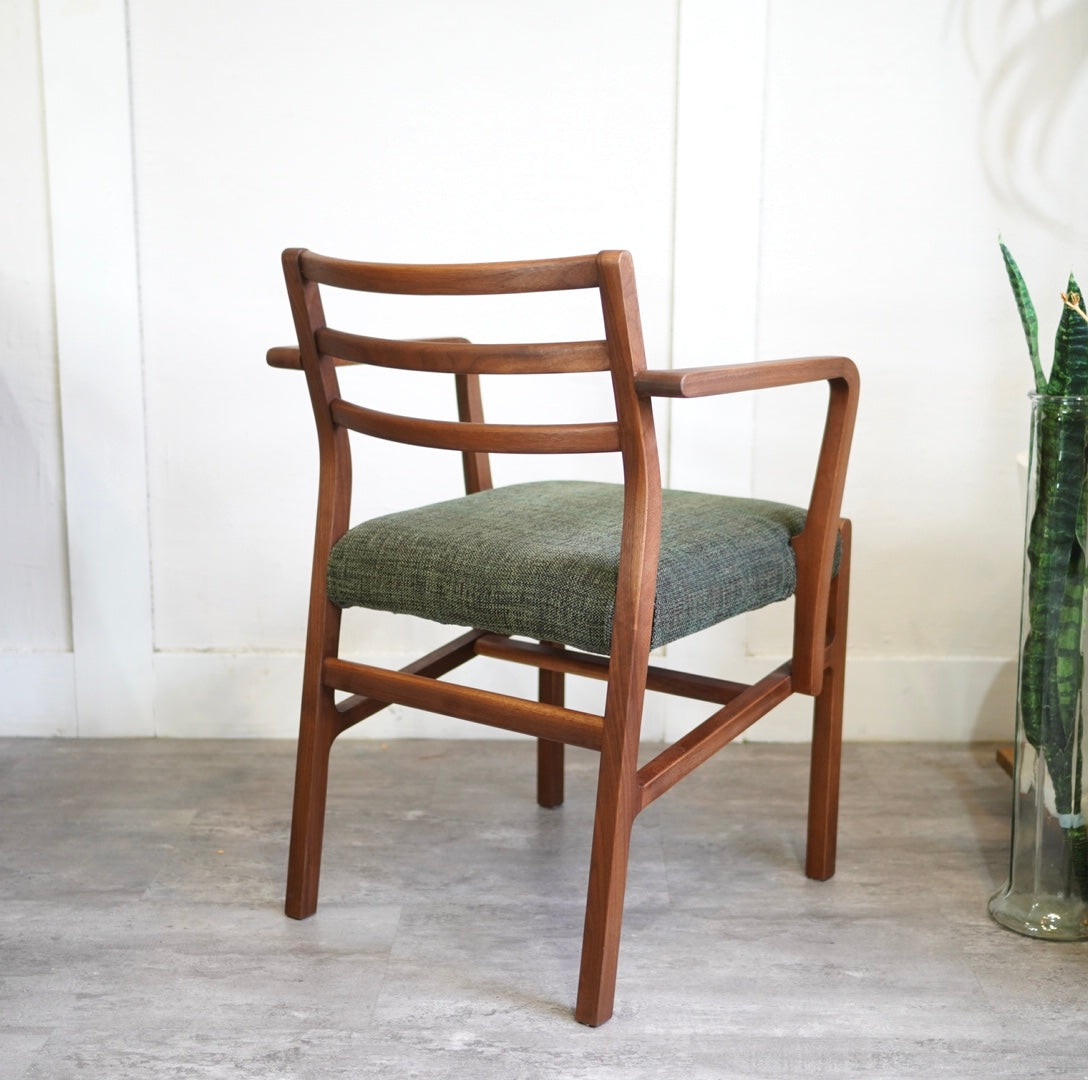 面取りが施された部材はカッコいい色味の中にやさしい印象を与えます。背もたれの曲線は特に美しく注目ポイント。